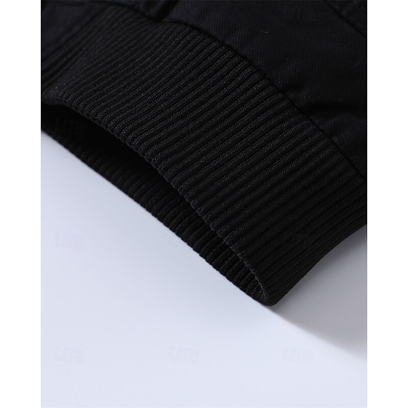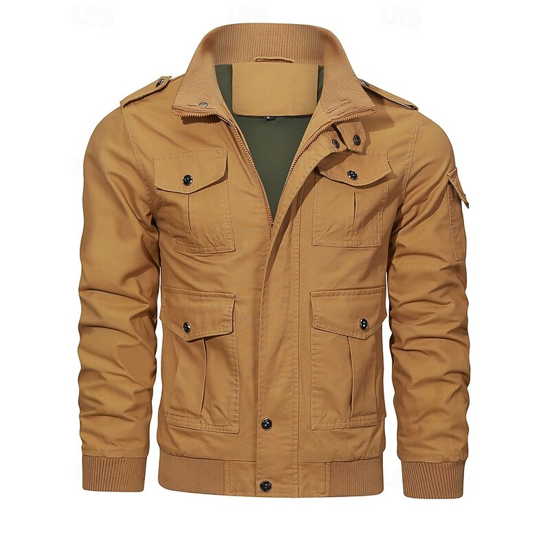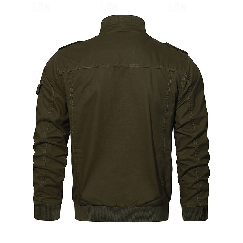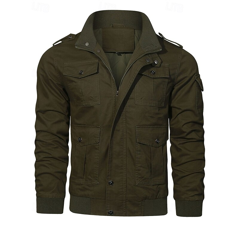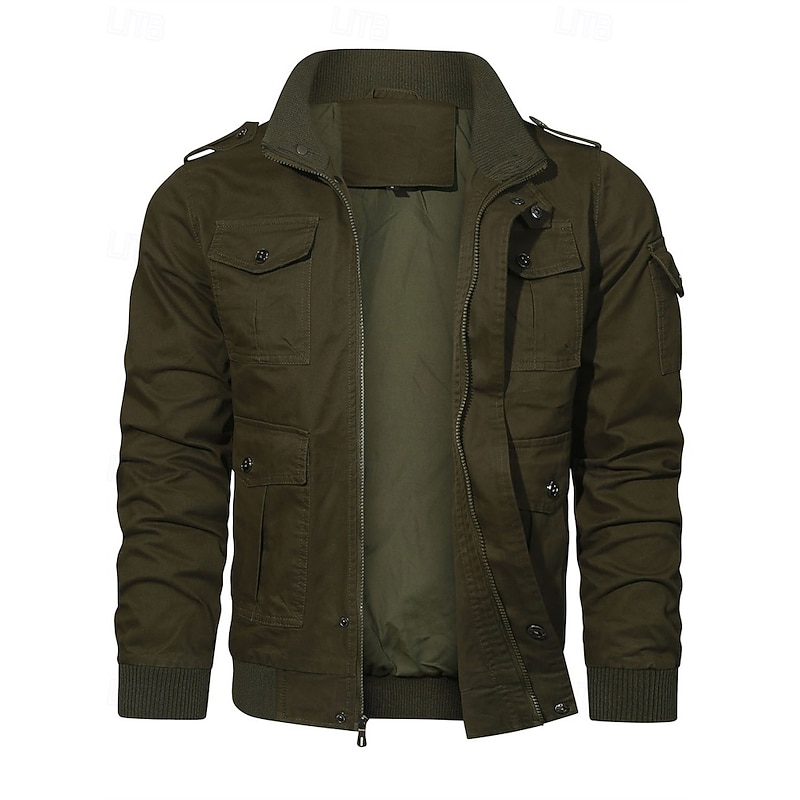 More information about Men's Trucker Jacket Cargo Jacket Casual Jacket Vacation Daily Pocket Spring Fall Plain Fashion Classic Stand Collar Regular Black Khaki Army Green Jacket