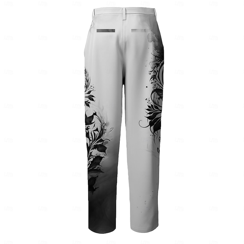 Men's Plant Dress Pants Mid Waist Casual Home Dailywear Zipper Pocket Summer Spring Fall 3D Print Black Dark Red Blue