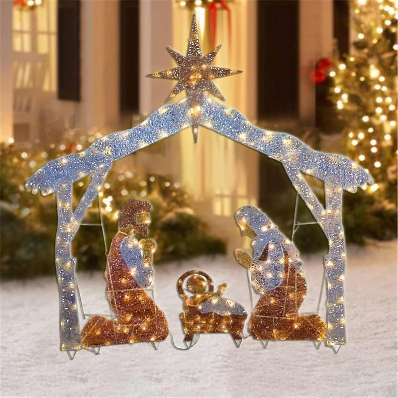 Christmas Decoration Christmas Glowing Nativity Scene Manger Scene Garden Fromt Yard Decoration Christmas Easter Ornaments 9