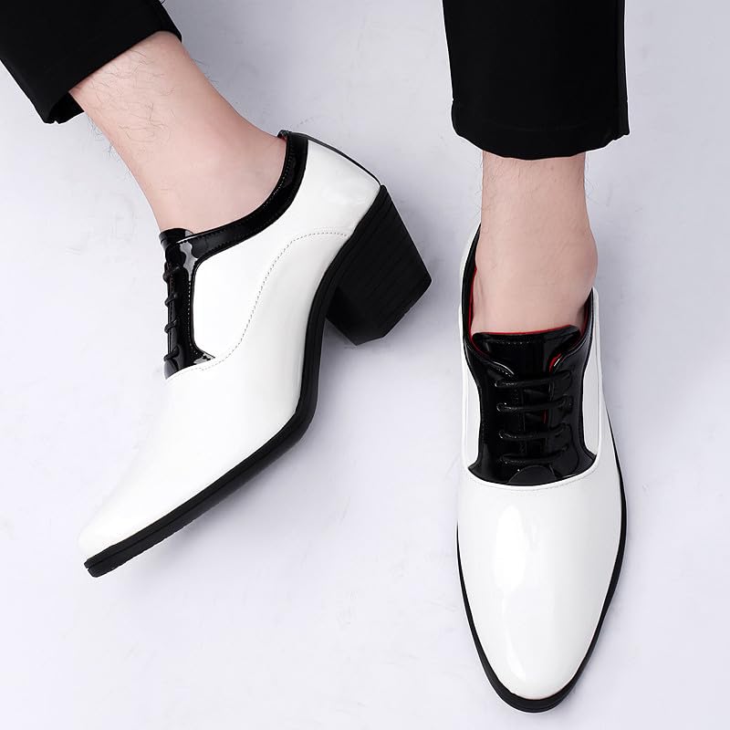 Santimon Men's Contrast Patent Leather Cuban Heel Oxfords Shoes for Wedding Dress Lace-up Shoes 7
