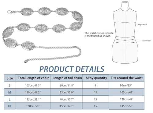 Western Concho Chain Belt for Women Adjustable Metal Waist Chain for Jeans or Dresses 6