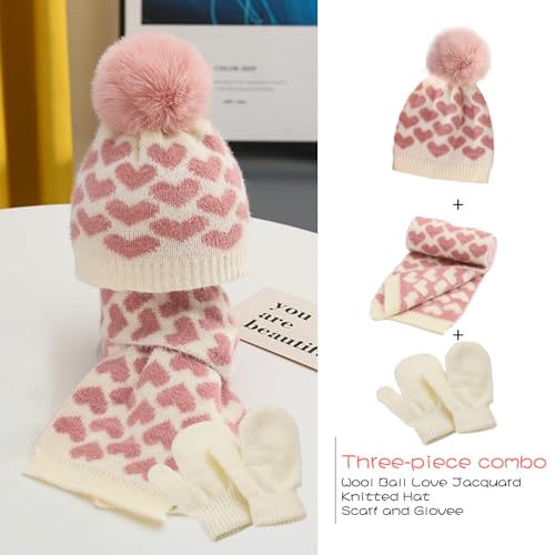 • "��Lovely Design��This baby beanie hat glove scarf set will keep warm and block out the frigidness and provide the charming and cute look. The unique heart-shaped pattern makes your children more cute and lively, stand out in the crowd, and easily matches all of your child's winter cold weather clothing."