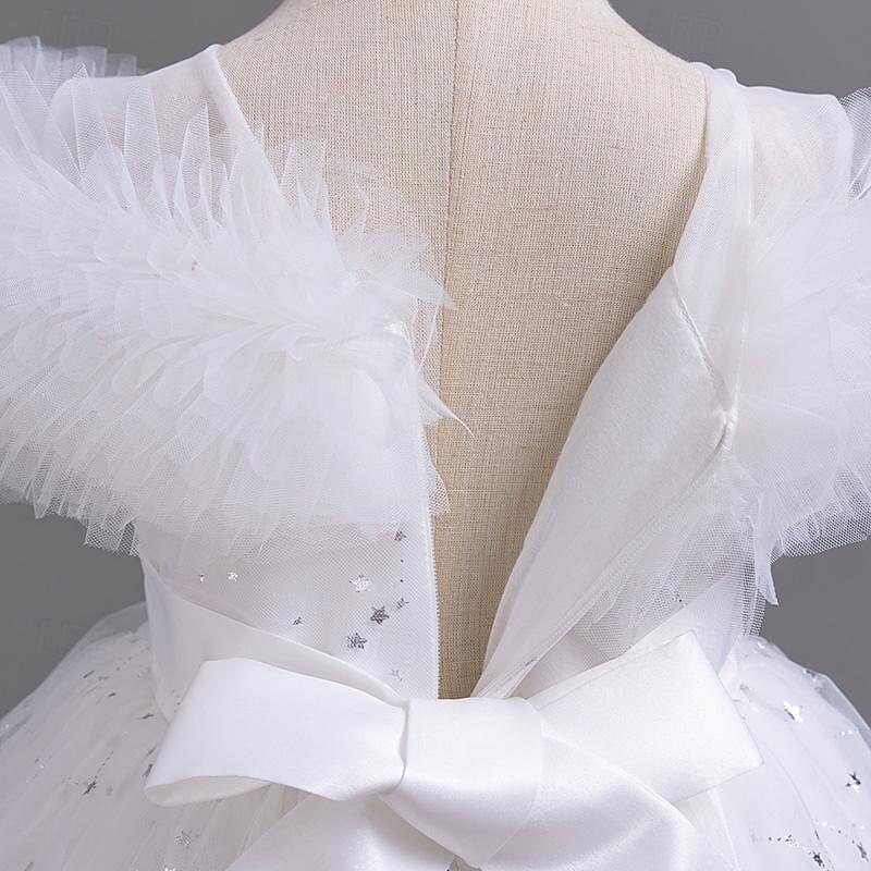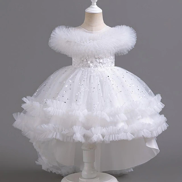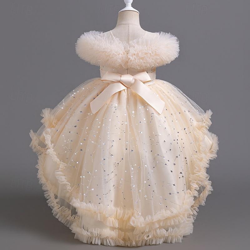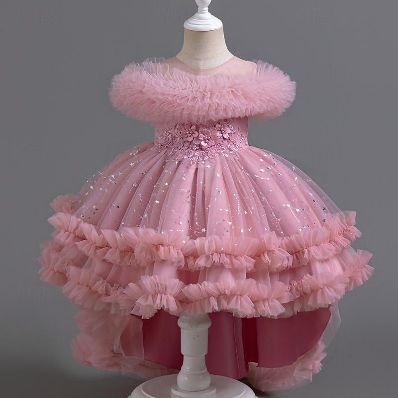 More information about Kids Girls' Flower Girl Dress Party Dress Solid Color Floral Star Sleeveless Wedding Party Special Occasion Sequins Ruched Mesh Adorable Sweet Cotton Polyester Asymmetrical Party Dress Summer Spring