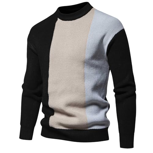 Mens Mock Neck Long Sleeve Basic Pullover Sweater Patchwork Color Block Printed Pullover Y2K Sweaters Fall Winter 2