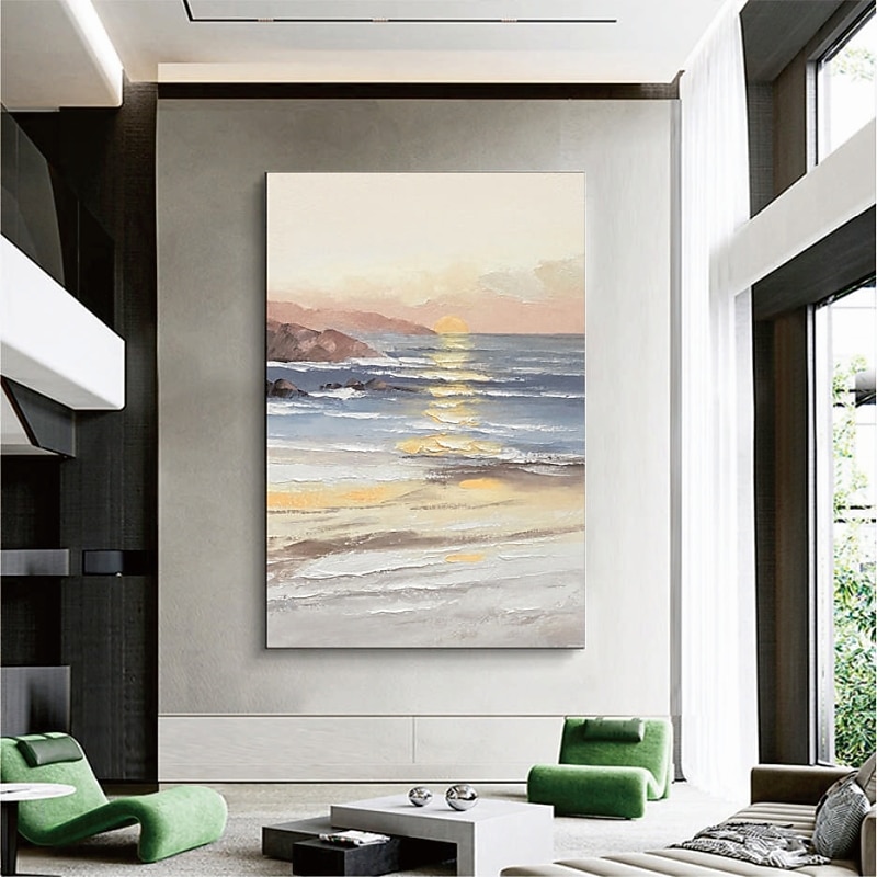 Handmade Hand Painted Oil Painting Wall Art Ocean Sunrise Landscape Home Decoration Decor Rolled Canvas No Frame Unstretched 1