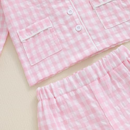 Multitrust Kids Baby Girls Boys Plaid Cotton Pajamas Set Long Sleeve Button Down Shirts Tops and Pants Gingham Pj Lounge Sets