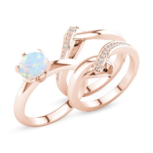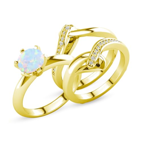 Gemstone Engagement Ring Set for Women 10K 14K 18K Solid Gold Gemstone Bridal Wedding Ring Set Wedding Band 3 Piece Wedding Ring Sets for Her Anniversary Promise Rings 6