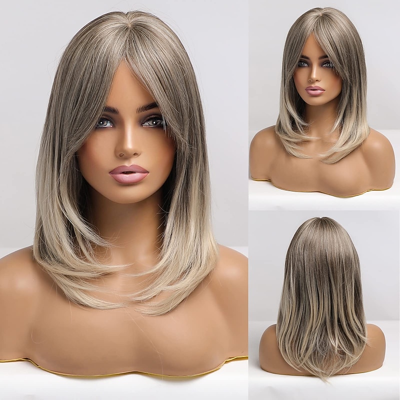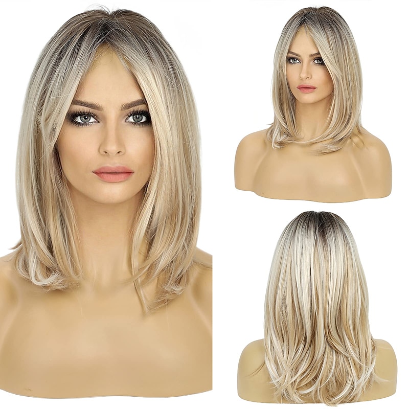 HOT ! Blonde Wigs with Bangs Long Layered Blonde Wig Women Synthetic Wig with Bangs 18inch Christmas Party Wigs