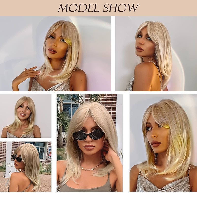 Blonde Wigs with Bangs Long Layered Blonde Wig Women Synthetic Wig with Bangs 18inch Christmas Party Wigs 7
