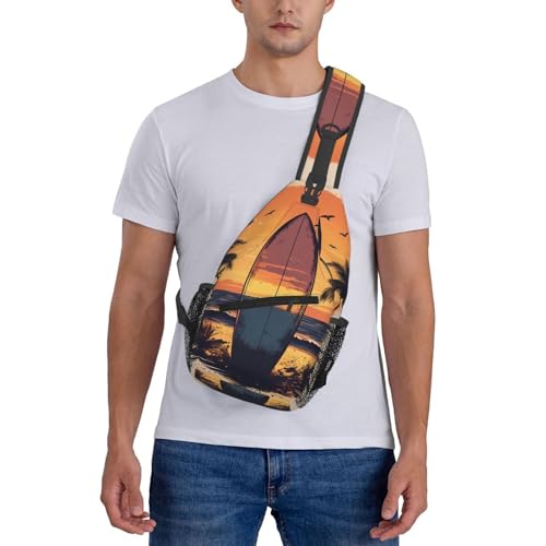 HOT ! Surfboard Palm Tree Multi Functional Adjustable Single Shoulder Crossbody Bag,Casual Chest Bag, Suitable For Daily Travel,Unisex