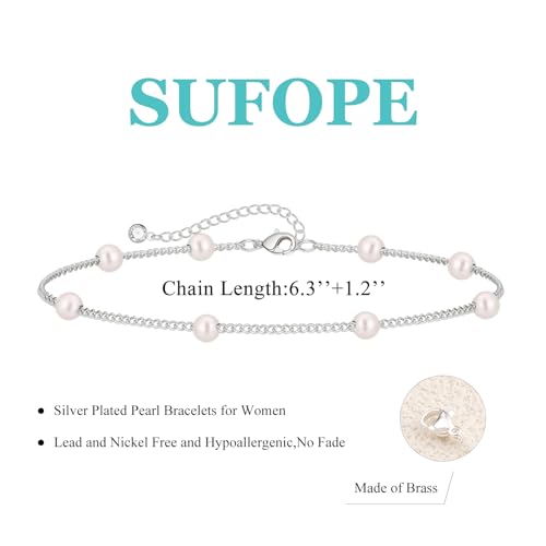 • Size:The silver bracelets length is 6.3 inches with 1.2 inches extension,the diameter of the pearls is 4 mm,adjustable chain fits most women;minimalist pearl bracelets will add charm and elegance to you,suitable for various occasions