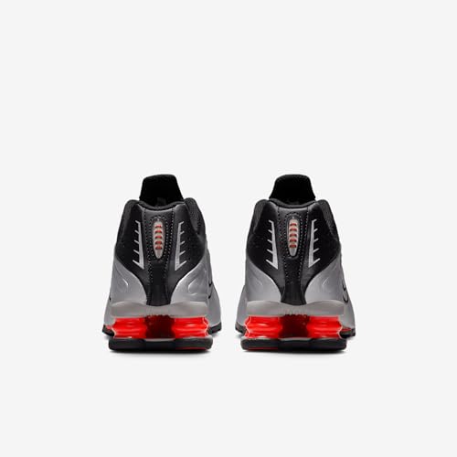 Nike Shox R4 Big Kids' Shoes (CW2626-005, Metallic Silver/Black/Picante Red/Metallic Silver) 5