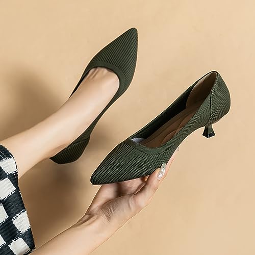 Women's Kitten Heels Pointed Toe Knit Pumps Slip On Foldable Comfortable Casual Formal Dress Shoes 5