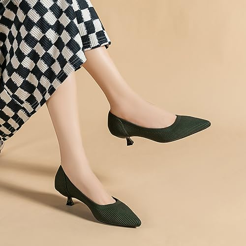 Women's Kitten Heels Pointed Toe Knit Pumps Slip On Foldable Comfortable Casual Formal Dress Shoes 6