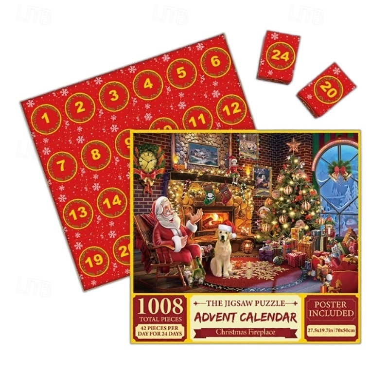 Christmas Advent Calendar 2025 Jigsaw Puzzle 1008 Pieces Puzzle Xmas Gift 24 Days Christmas Countdown Calendars for Kids Adults 6