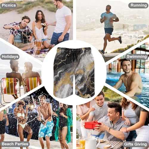 • 【Material】This Black White Gold Foil Marble men's swim shorts are made of peach skin fabric, which is quick-drying, lightweight and durable. The mesh lining is breathable, suitable for summer wear, keeping you cool and comfortable all day long.