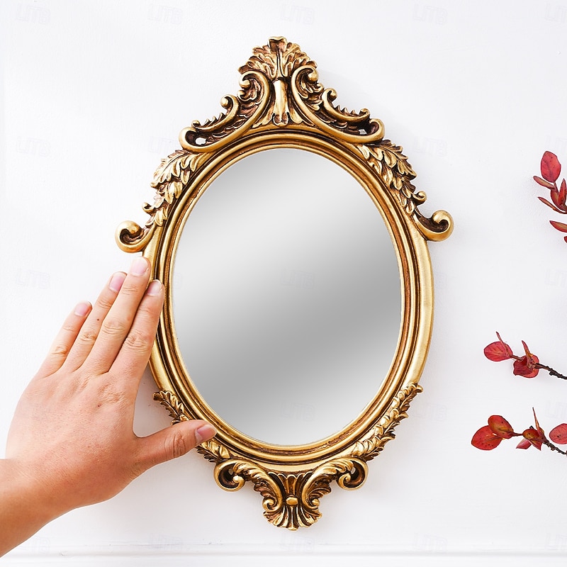 HOT ! Classic Pattern Oval Decorative Wall Mirror – European Style Home Art Hanging, Creative Vanity Mirror for Wall Decor & Photography Props