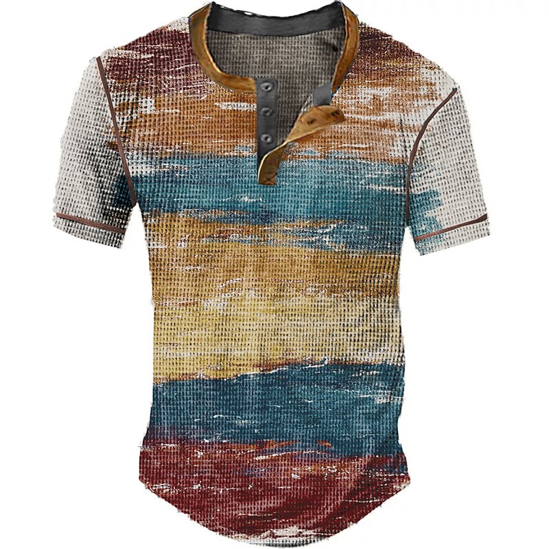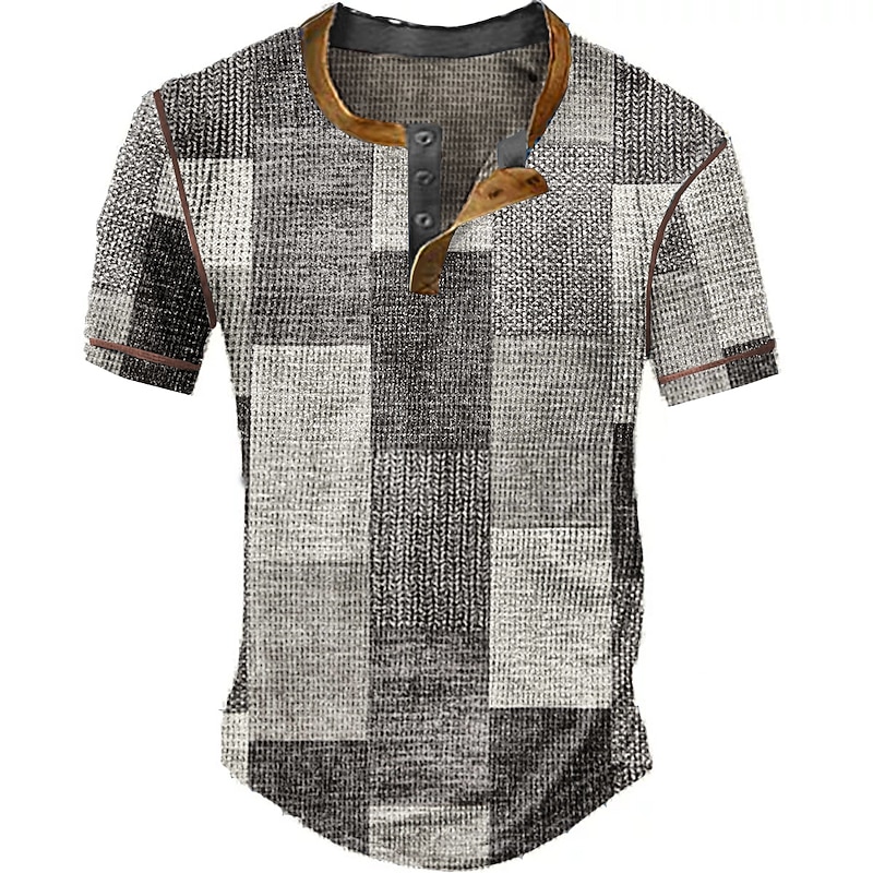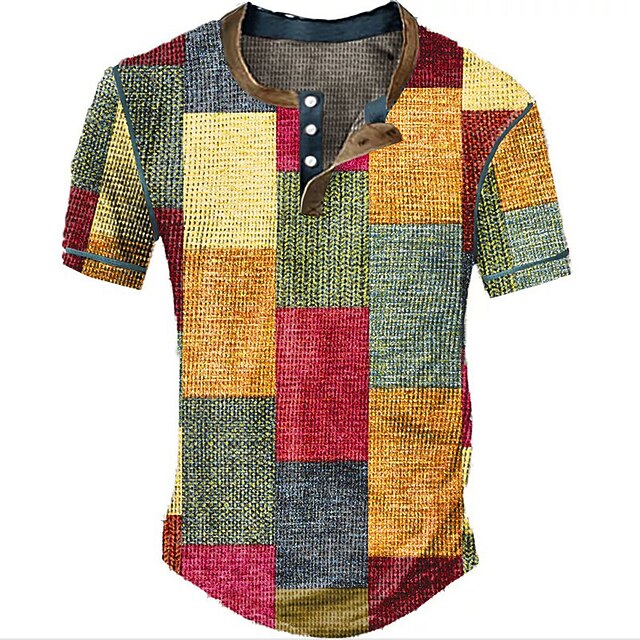 Men's Graphic Plaid Color Block Waffle Henley Shirt Short Sleeve 3D Print Vintage Fashion Designer Outdoor Daily Summer White Red Blue Orange Khaki Henley Henley T-Shirt