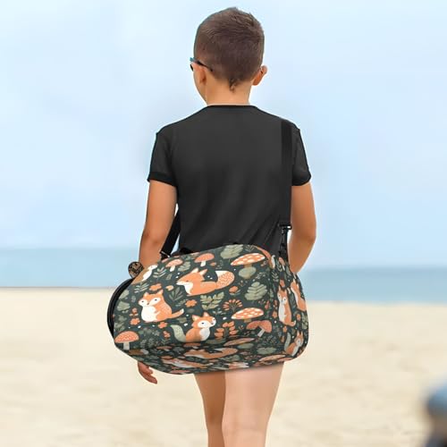 YETTASBIN Sport Travel Duffel Bag for Girls Boys, Cute Fox Large Waterproof Weekender Overnight Bag, Detachable Shoulder Strap Gym Bag with Shoe Compartment & Wet Pocket 5