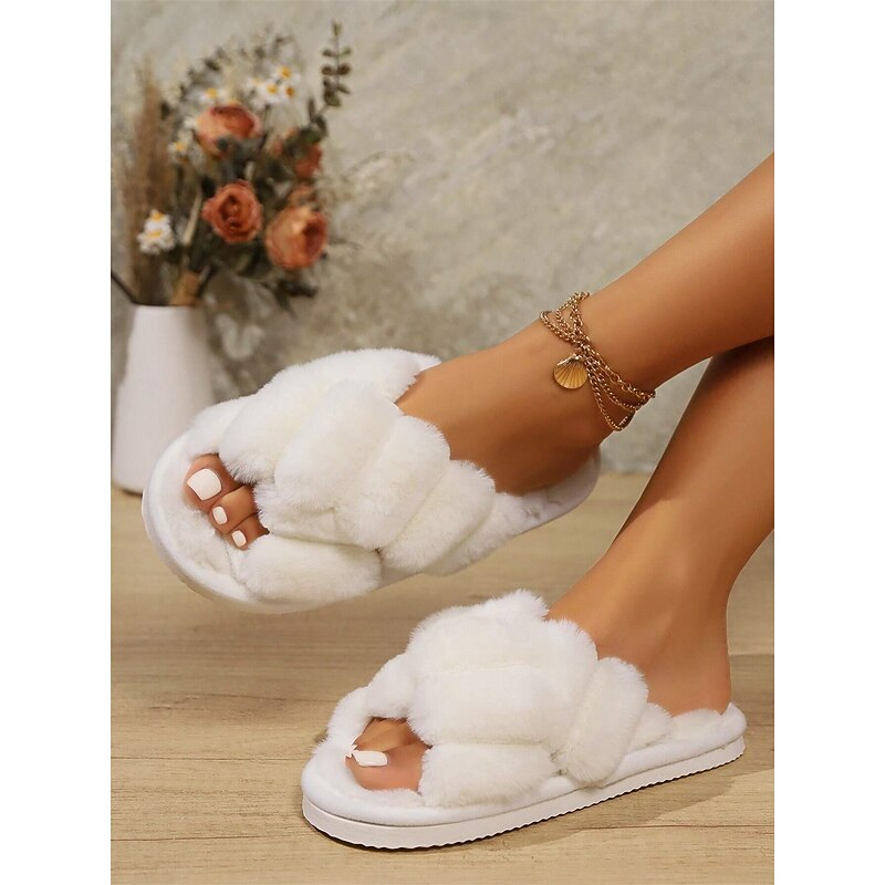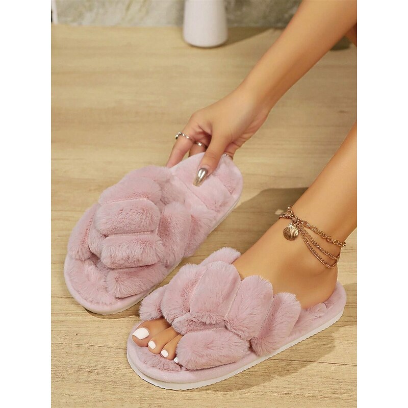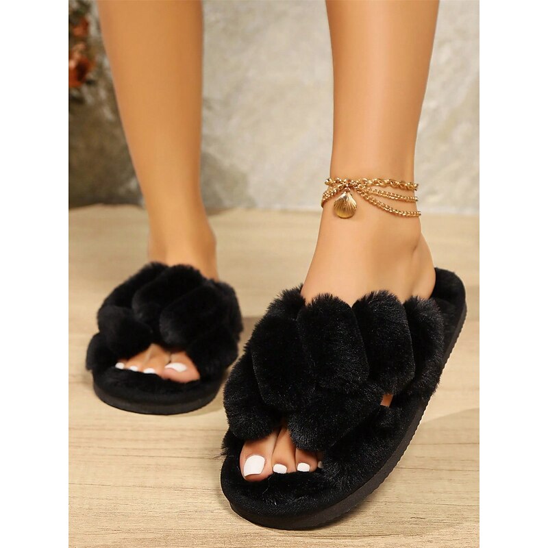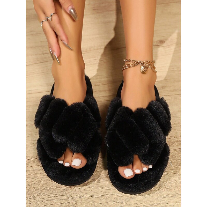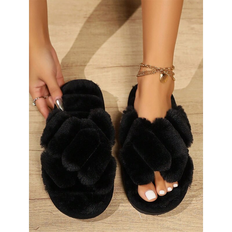 More information about Women's Slippers Fuzzy Slippers Fluffy Slippers House Slippers Warm Slippers Home Daily Fleece Lined Flat Heel Round Toe Plush Casual Minimalism Faux Fur Loafer Colorful Black White