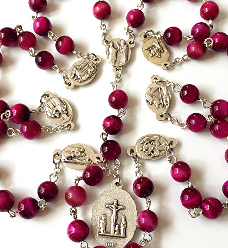 More information about elegantmedical HANDMADE RARE RED Tiger Eye Jade Beads SEVEN 7 SORROWS MARY Rosary Necklace Catholic GIFTS