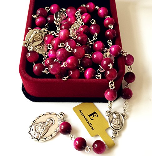• elegantmedical HANDMADE RARE RED Tiger Eye Jade Beads SEVEN 7 SORROWS MARY MEDAL Rosary Necklace Catholic GIFTS
