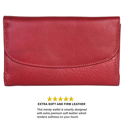Leatherboss Genuine Leather Clutch Party Credit Debit Card Holder Wallet Purse with Coin Pocket for women, Red 5