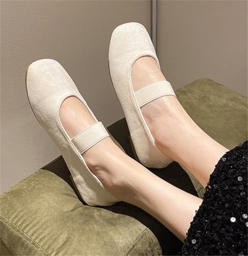 Suede Ballet Flats for Women Soft Square Toe Shoes Mary Jane Flats Slip On Leather Comfortable Ballerina Shoes 7