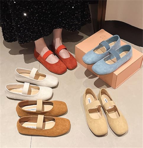 Suede Ballet Flats for Women Soft Square Toe Shoes Mary Jane Flats Slip On Leather Comfortable Ballerina Shoes 6