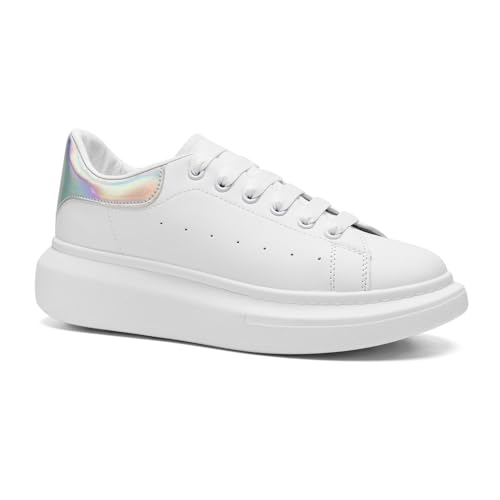 COVS Platform White Sneakers for Women, Women's Fashion Sneakers, Leather Sneakers for Women Unisex Height Increase Shoes 6