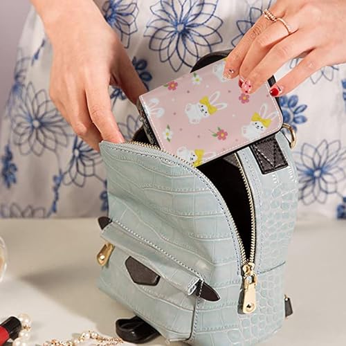 Cute Bunnies Rabbits Floral Pink Women Wallet Small Credit Card Wallets RFID Blocking Print Zipper Card and Cash Holder 6