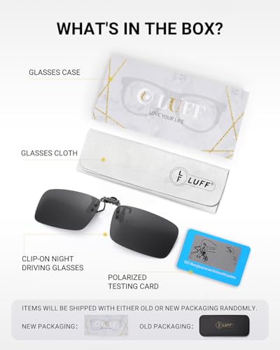 • ★WHAT YOU GET - clip on sunglasses*1, glasses storage case*1, high quality cleaning cloth*1, Polarized test card*1,our worry-free 12-month warranty and friendly customer service.