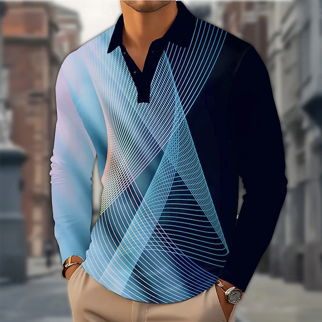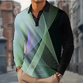 More information about Men's Geometric Line Polo Long Sleeve Polo Shirts Lapel Casual Outdoor Street Athleisure Daily Wear 3D Print Buttons Spring Fall Winter Blue Purple Green