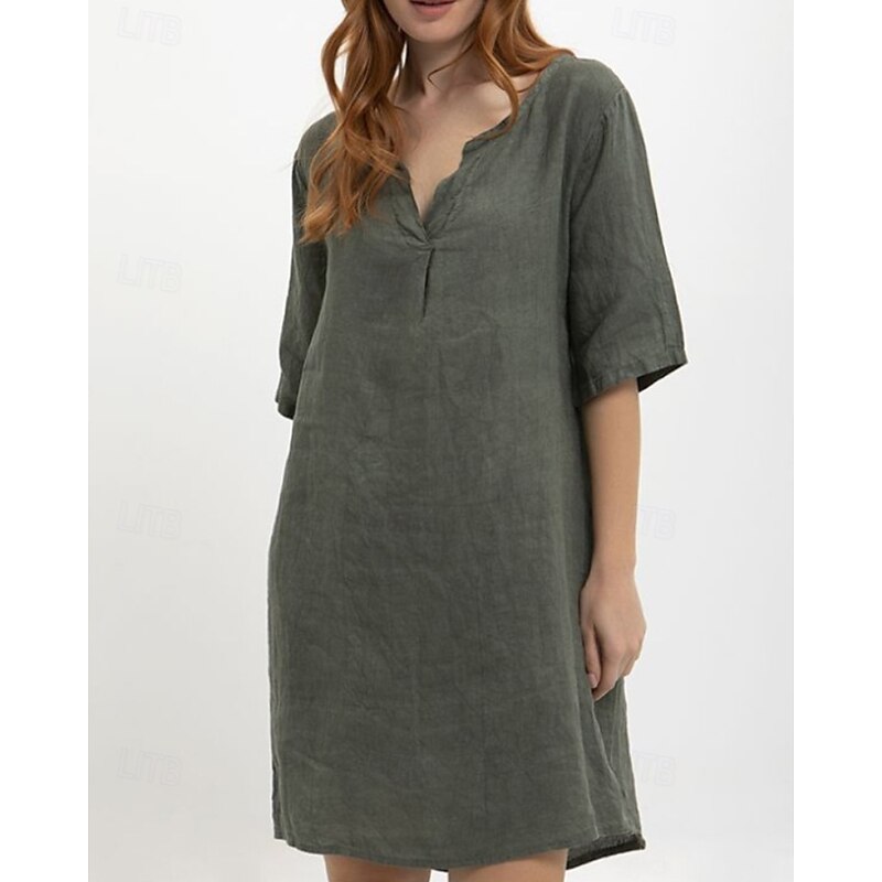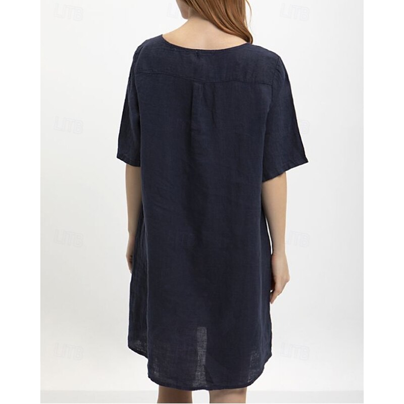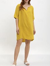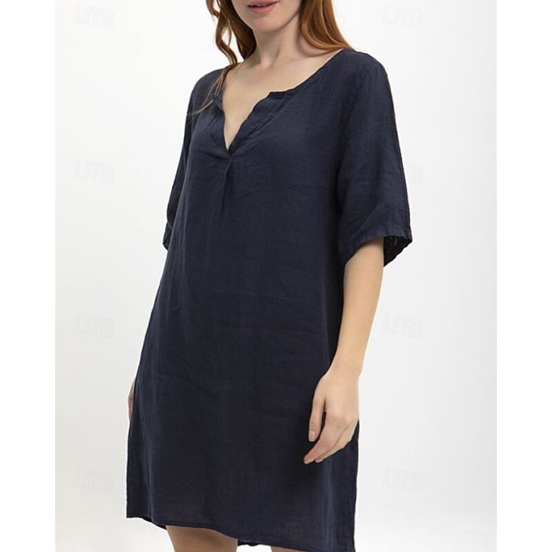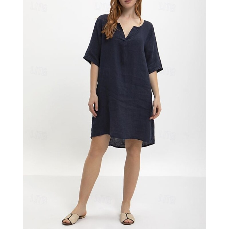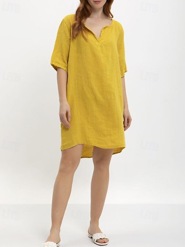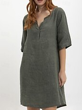 More information about Women's Midi Dress Cotton Linen Dress Classic Modern Outdoor Going out Weekend Regular Fit Plain Half Sleeve V Neck Yellow Navy Blue Dark Gray Summer