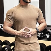 Highlights - Perfect for spring and fall weather - Made from high quality polyester fabric - Short sleeve design for added comfort - Suitable for men - Casual style that is suitable for daily wear or the gym - Solid color pattern for a sleek look - Features a stylish turtleneck neckline
