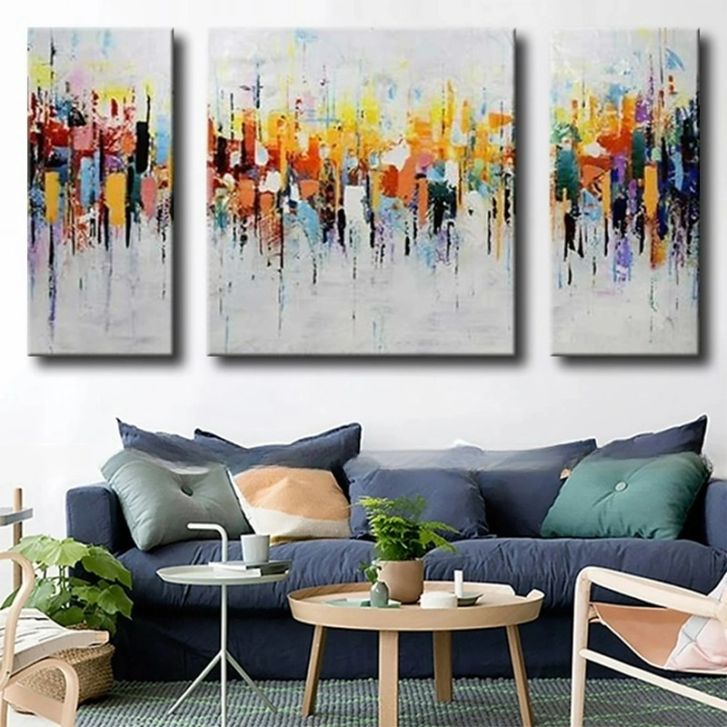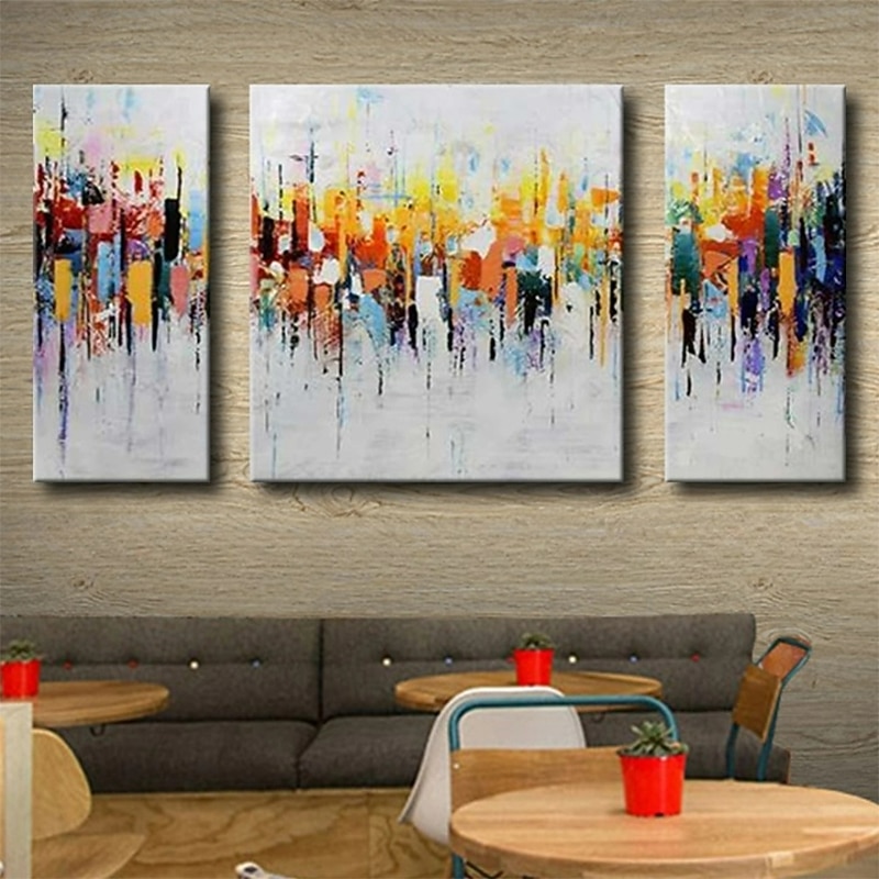 3 Panels Oil Painting 100% Handmade Hand Painted Wall Art On Canvas Colorful Horizontal Abstract Modern Home Decoration Decor Rolled Canvas With Stretched Frame 1