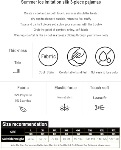 More information about Men's 3-Pcs Pajamas Set Extra Plus Size Satin Pjs Set Men's Short-Sleeved Shorts Loungewear 50-150KG