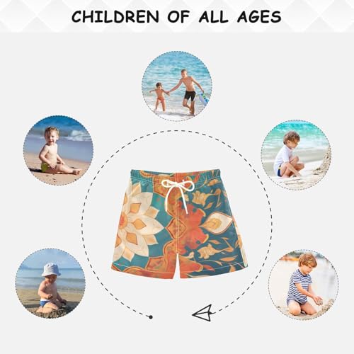 Boys swift Dry Swim Trunks with Pockets Flower Oriental traditional Mandala Beach Shorts for Kids, Toddler Swimsuit Boy