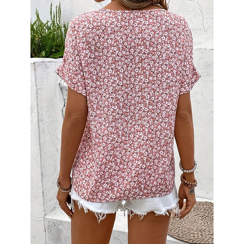 Women's Blouse Button Down Floral Stylish Casual Short Sleeve Crew Neck Regular Tops Daily Buttons Print Pink Navy Blue Orange Summer 5