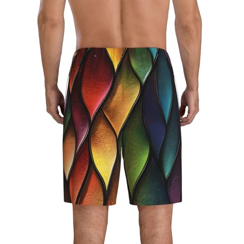 • Material Composition: Made from a cotton-like blend of 95% polyester and 5% spandex, these Abstract Color Stained Glass Print mens sleep shorts offer a supple, breathable feel with enough stretch to move freely—splendid for summer shorts for men, lounge shorts men, or mens cotton pajama pants