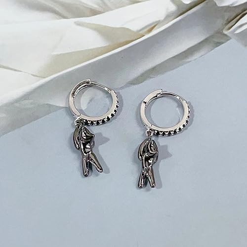 Cute Cat Dangle Hoop Earrings for Women Girls Cubic Zirconia Small Huggie Hoops Animal Pet Dangling Drop Earrings Couples Matching Earrings 6