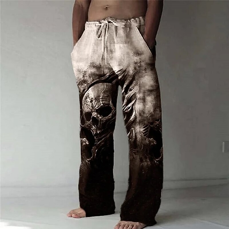 HOT ! Men's Trousers Summer Pants Beach Pants Drawstring Elastic Waist 3D Print Skull Graphic Prints Comfort Casual Daily Holiday Streetwear Hawaiian Yellow Blue