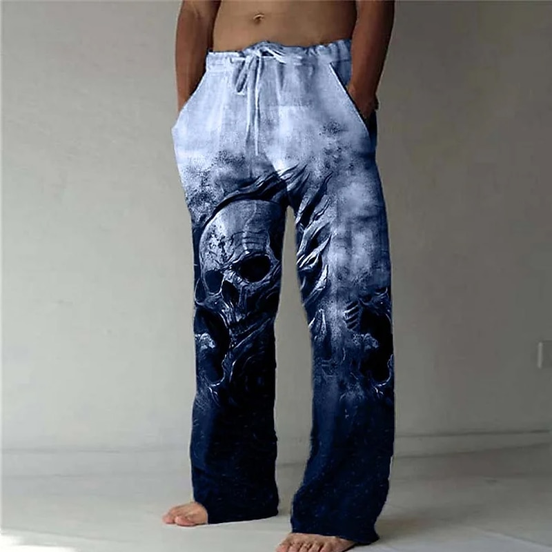 More information about Men's Trousers Summer Pants Beach Pants Drawstring Elastic Waist 3D Print Skull Graphic Prints Comfort Casual Daily Holiday Streetwear Hawaiian Yellow Blue
