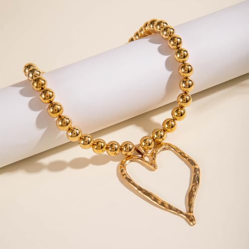 Material: MetalMetal type: No Metal TypeClasp type: LobsterChain type: BallGem type: No GemstoneY2K Statement Neck Jewelry: This chunky gold heart beads necklace screams fun with its oversized hollow love pendant and geometric round balls - the throwback to those trendy vintage Y2K vibes for parties or everyday dramaAdjustable & Chunky: At 16.33+2.16 inches long and weighing 1.61oz, this beaded chain choker gives you that great fit while the exaggerated heart pendant makes sure all eyes are on your necklineDress It Up or Down: Rock this funky heart collar necklace with your little black dress or favorite jeans - it's that versatile accessory that instantly upgrades any outfit from basic to boldVersatile Styling Tip: These jewelry pieces will instantly make any outfit look more put-together. You can dress them up for parties and dates, or stay trendy while out shopping. Whether it's lunch with friends or a cocktail hour, you'll look greatGreat Gift: Hey, Looking for some jewelry that really catches the eye? This design is not only unique but also super romantic, making it a surprise for her birthday, your anniversary, or even just because you feel like spoiling her on an ordinary day Perfect for everyday use. top-grade materials and excellent craftsmanship ensure long-lasting durability.