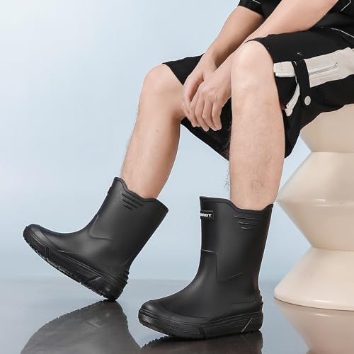 Hsttgsr Rain Boots for Men Waterproof Fashionable Rubber Boots Non-slip Outdoor Garden Boots Mid Calf Muck Work Shoes Comfort Lightweight Rainboots for Fishing Climbing