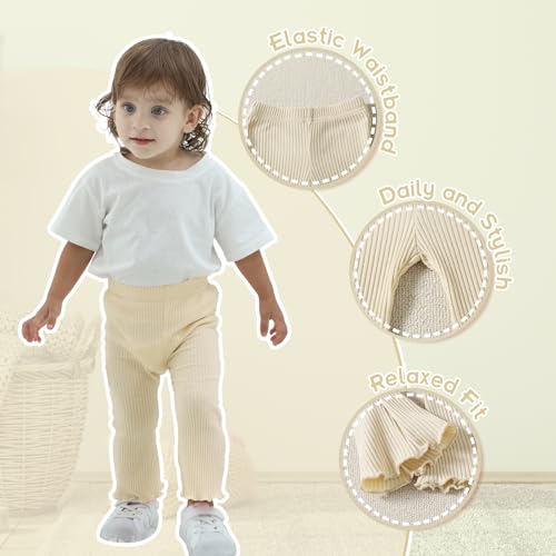 DREAM BUS 3 Pack Baby Girl Pants Toddler Leggings Solid Ribbed Cotton Baby Girls Flare Pants Toddler Bell Bottoms 5