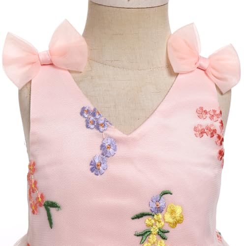 IBTOM CASTLE Infant Girl First Birthday Dress with Bow-Knot V-Neck Ruffle Tulle Party Dress Floral Princess Dress Gown 4