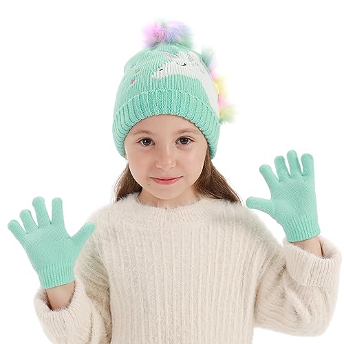 HOT ! Kids Novelty Unicorn Beanie Hat & Gloves Set Boys Girls Warm Winter Hat for Kids Age 3-6 Years