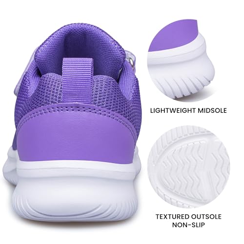 Girls Tennis Shoes Kids Sneakers Lightweight Sports Strap Athletic Shoes for Running Walking Purple Big Kid Size 2 5