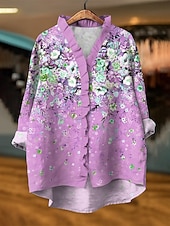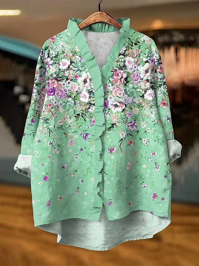 More information about Women's Blouse Floral Graphic Elegant Active Vintage Long Sleeve V Neck Daily Holiday Going out Ruffle Yellow Blue Purple Green Summer Spring Fall